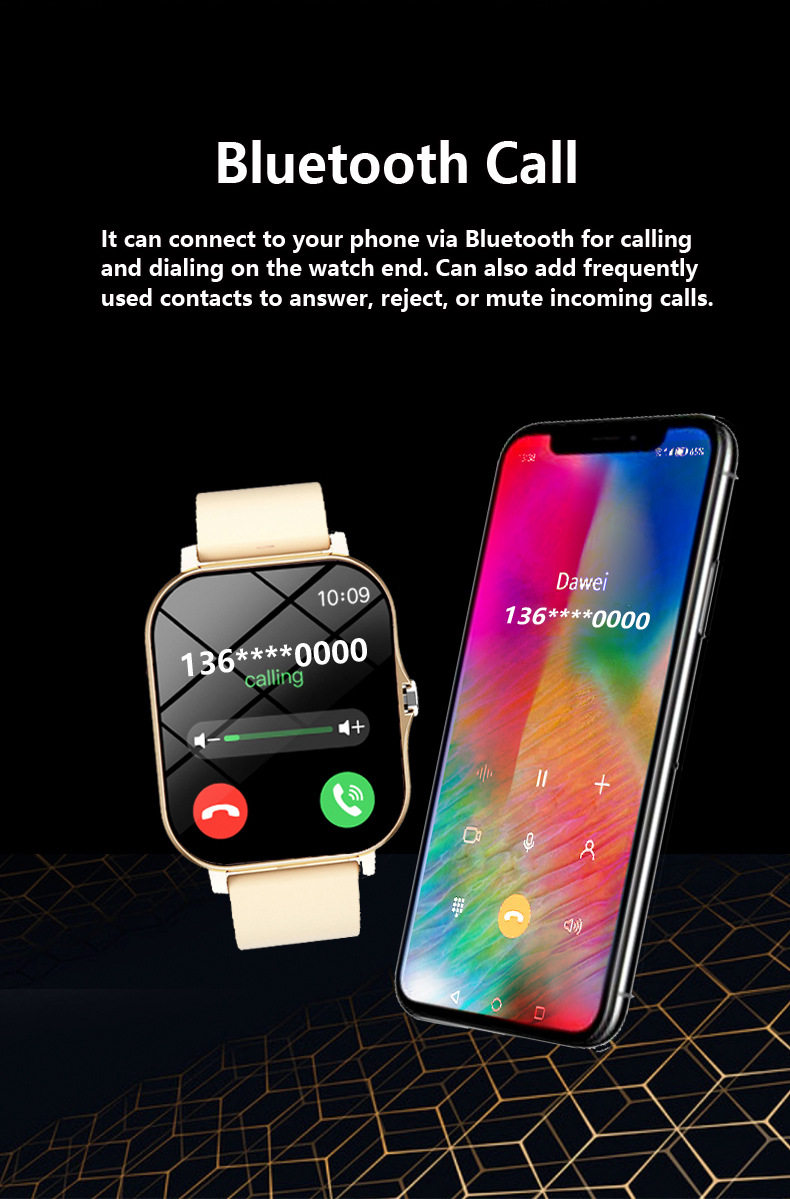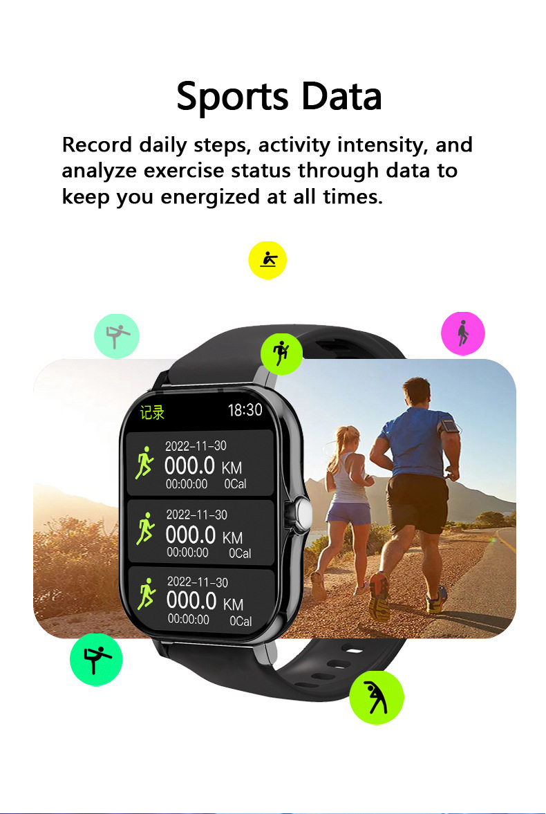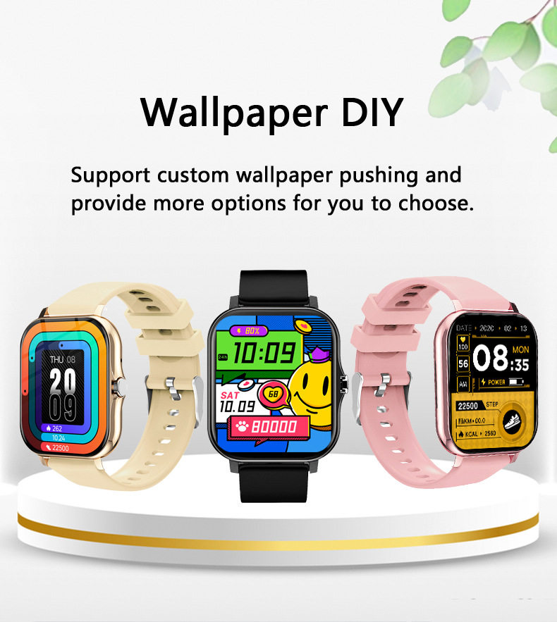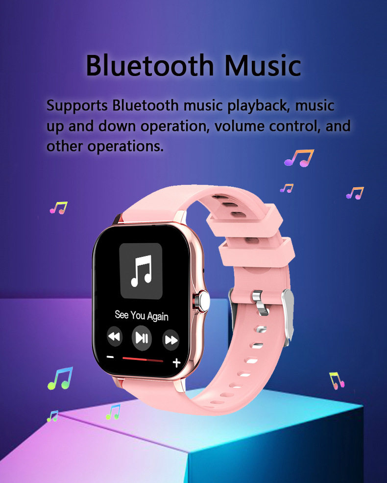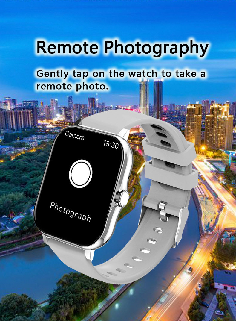 - Function: Step counting,Heart rate monitoring Blood pressure measurement,Social entertainment,Bluetooth call,Smart reminder,Remote control selfie,Sleep monitoring,Blood oxygen detection