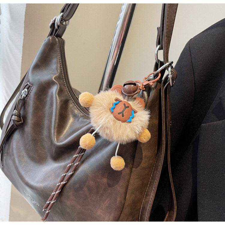 - Color: Coffee brown capybara plush keychain